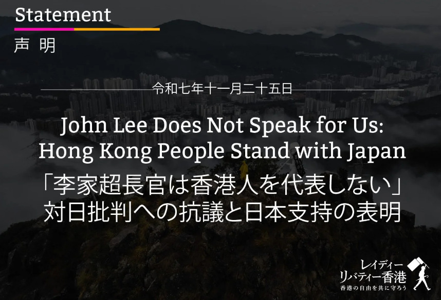 香港政府トップの李家超行政長官が、高市早苗首相の台湾有事と存立危機事態を巡る国会答弁を批判している。中国政府に追随した形だが、これに香港の民主派団体「レイディ…